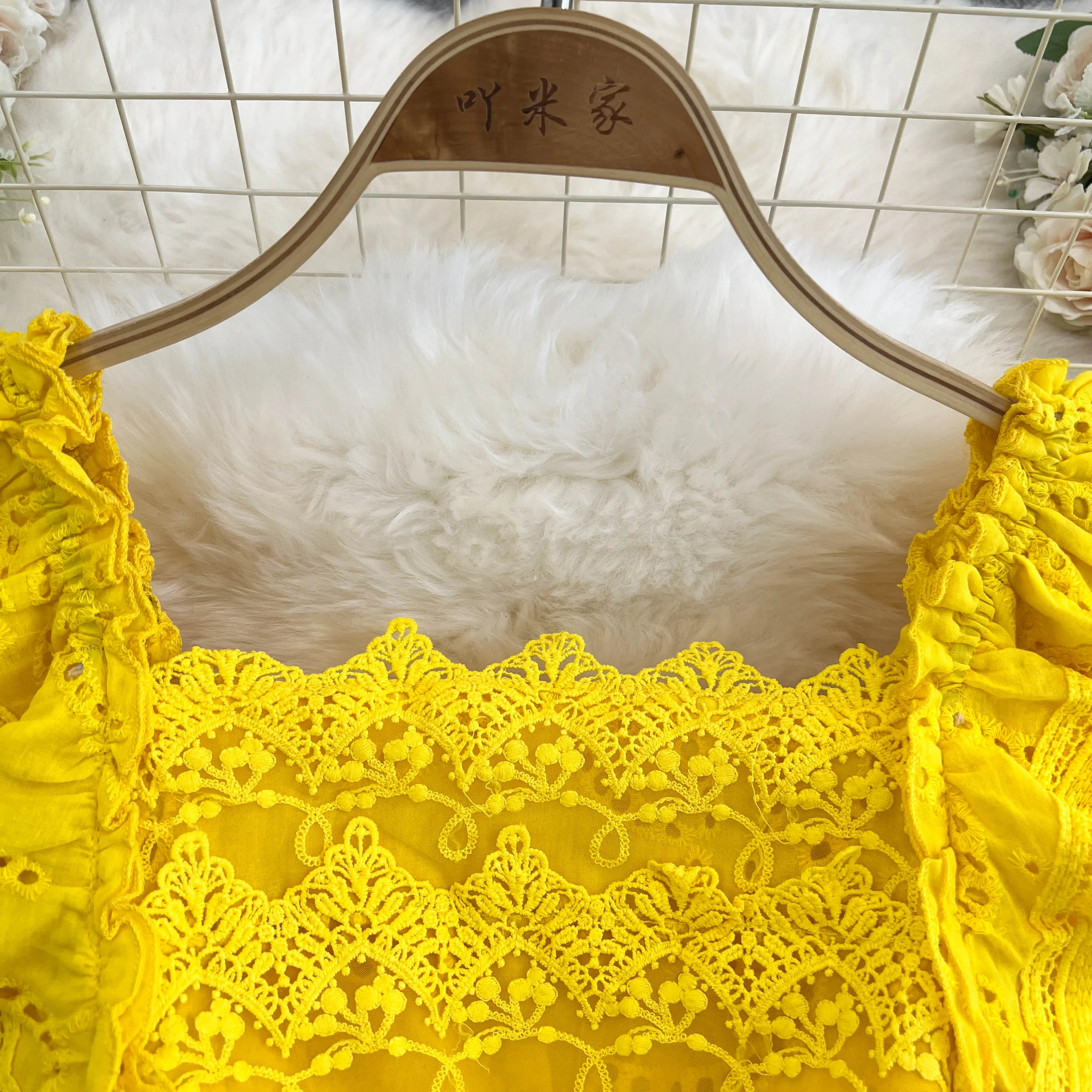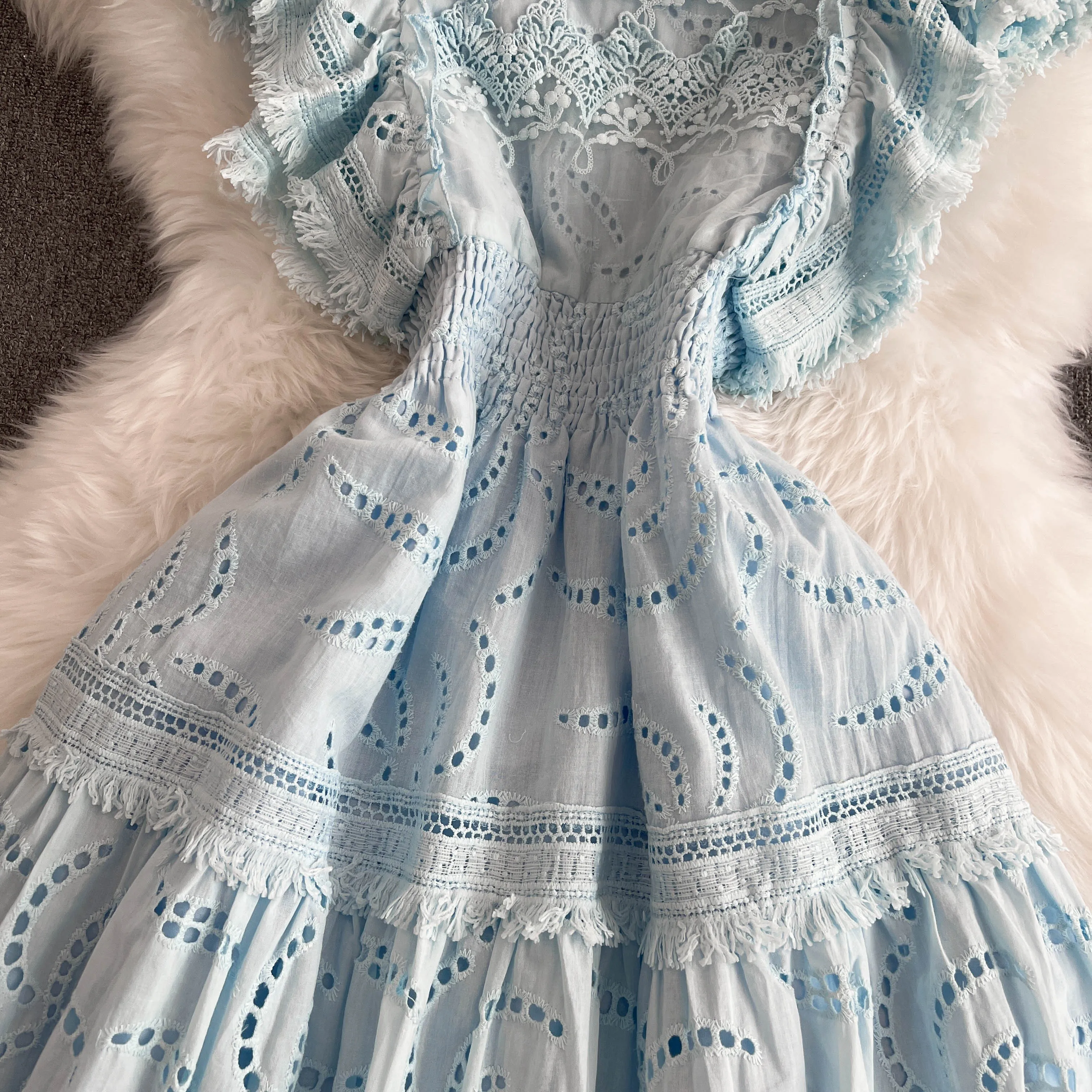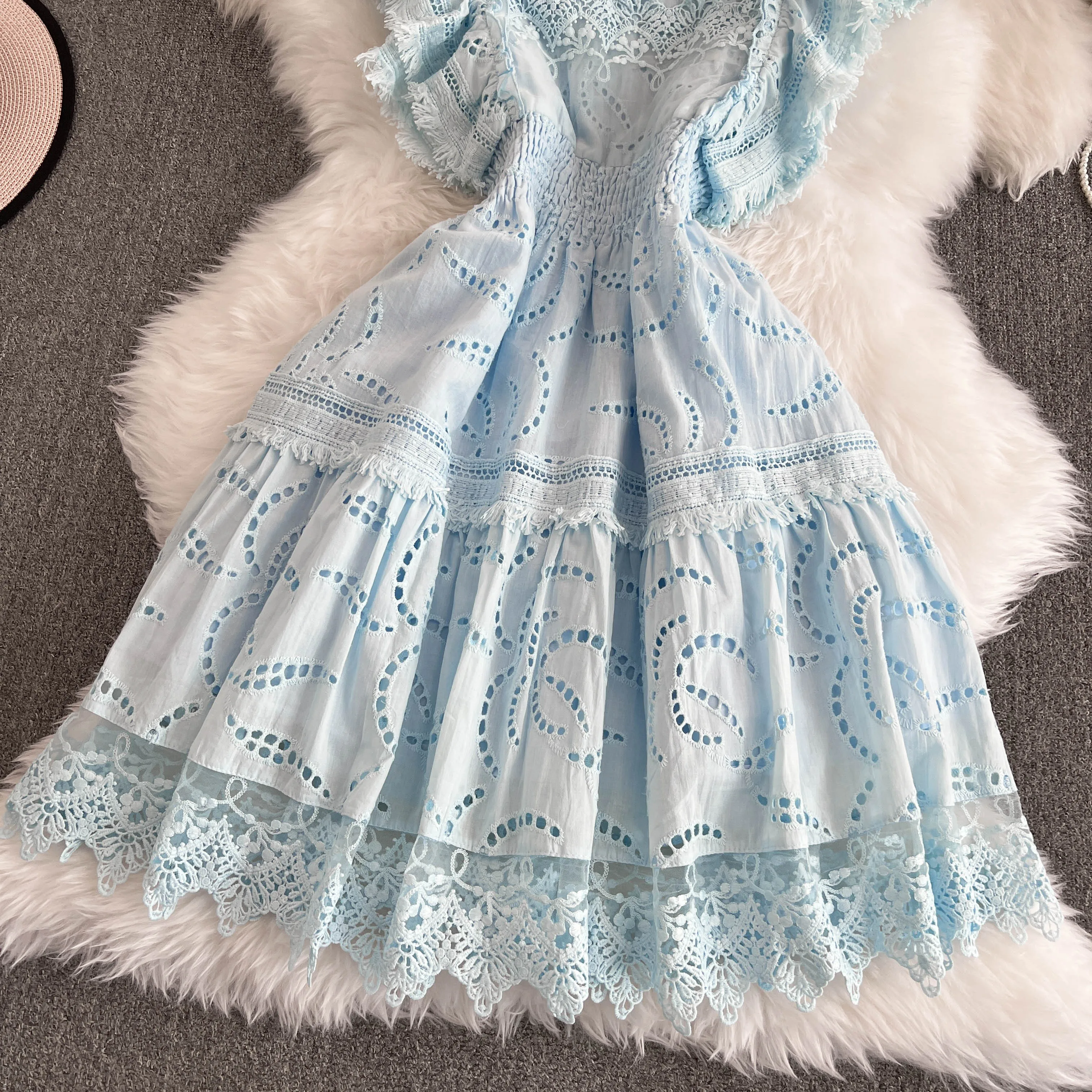 Women Elegant Party Dress Summer Vintage Square Neck Ruffles Short Sleeve Korean Dresses Ladies Slim A-line High Wiast Long Robe