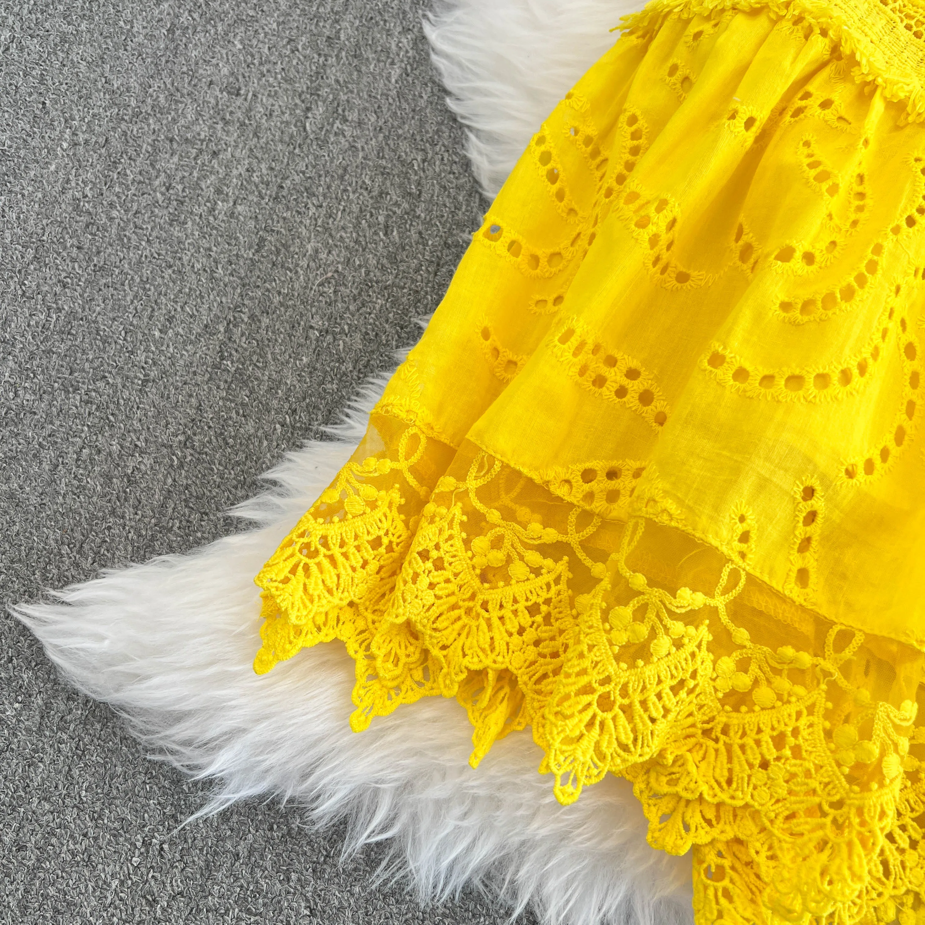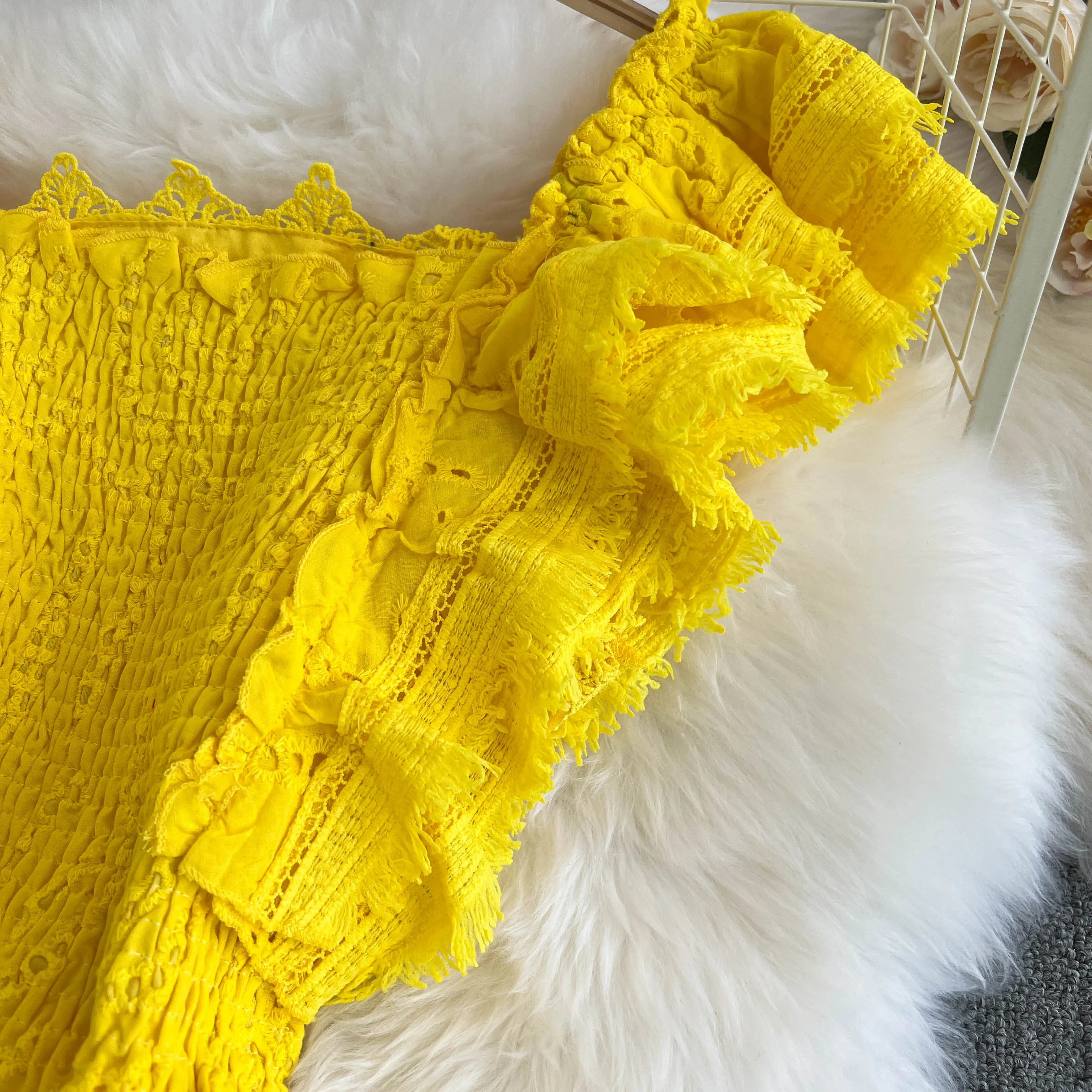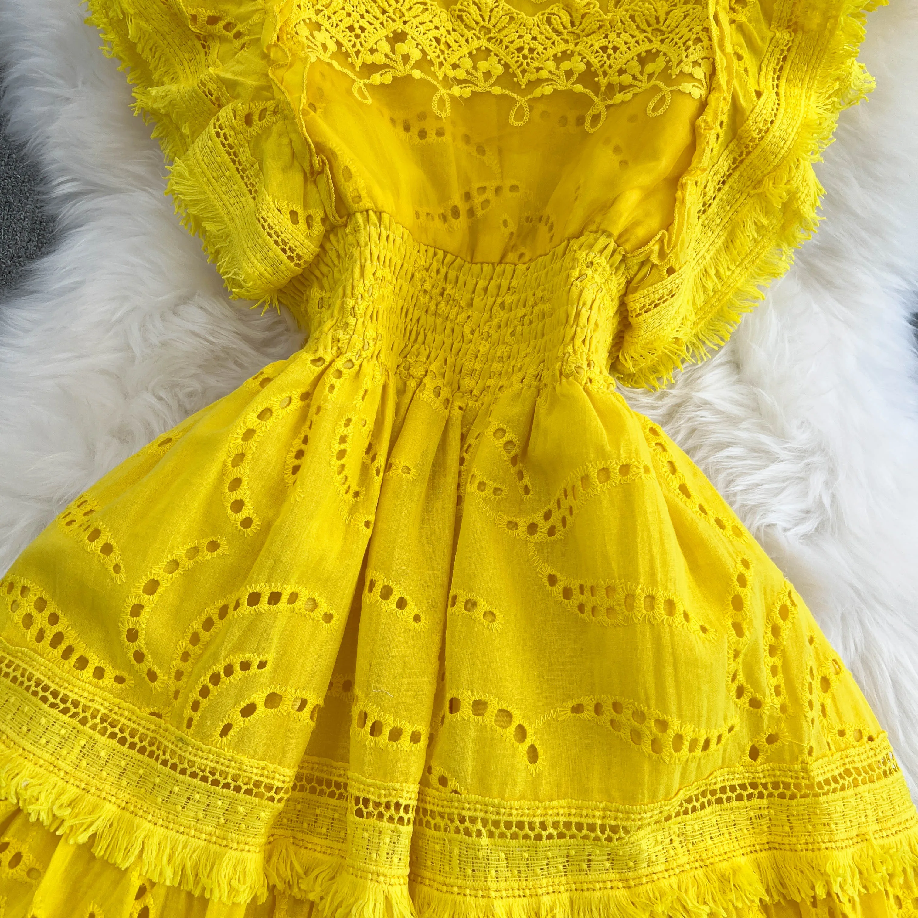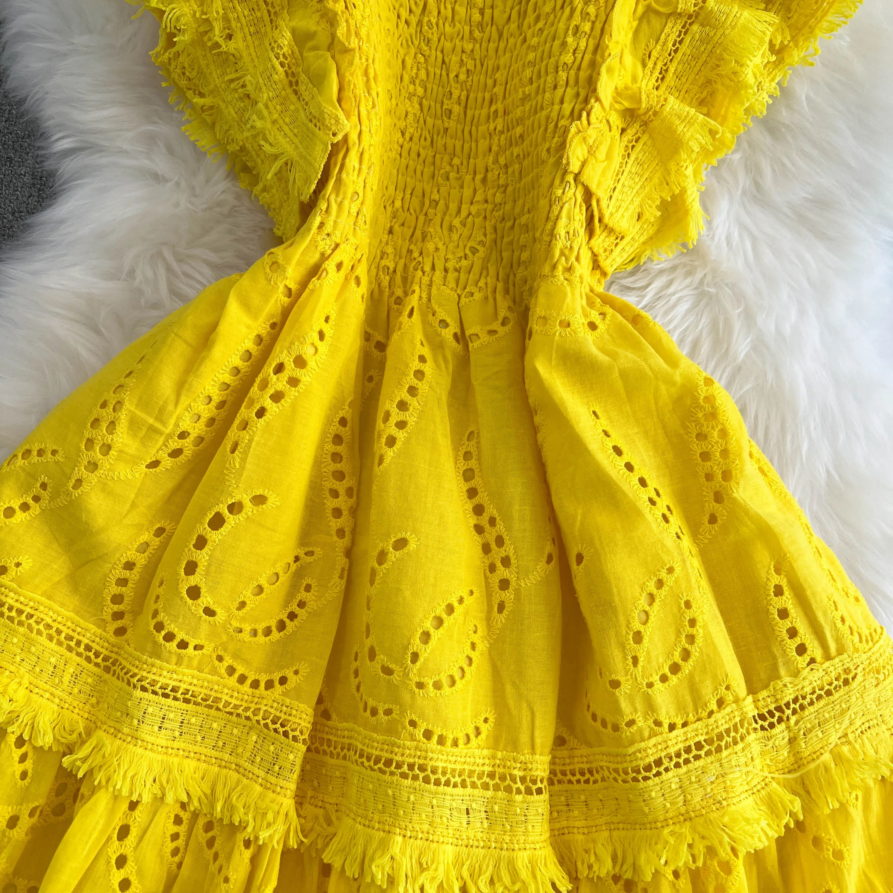 Women Elegant Party Dress Summer Vintage Square Neck Ruffles Short Sleeve Korean Dresses Ladies Slim A-line High Wiast Long Robe